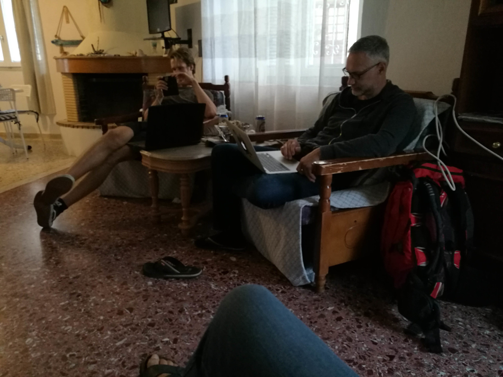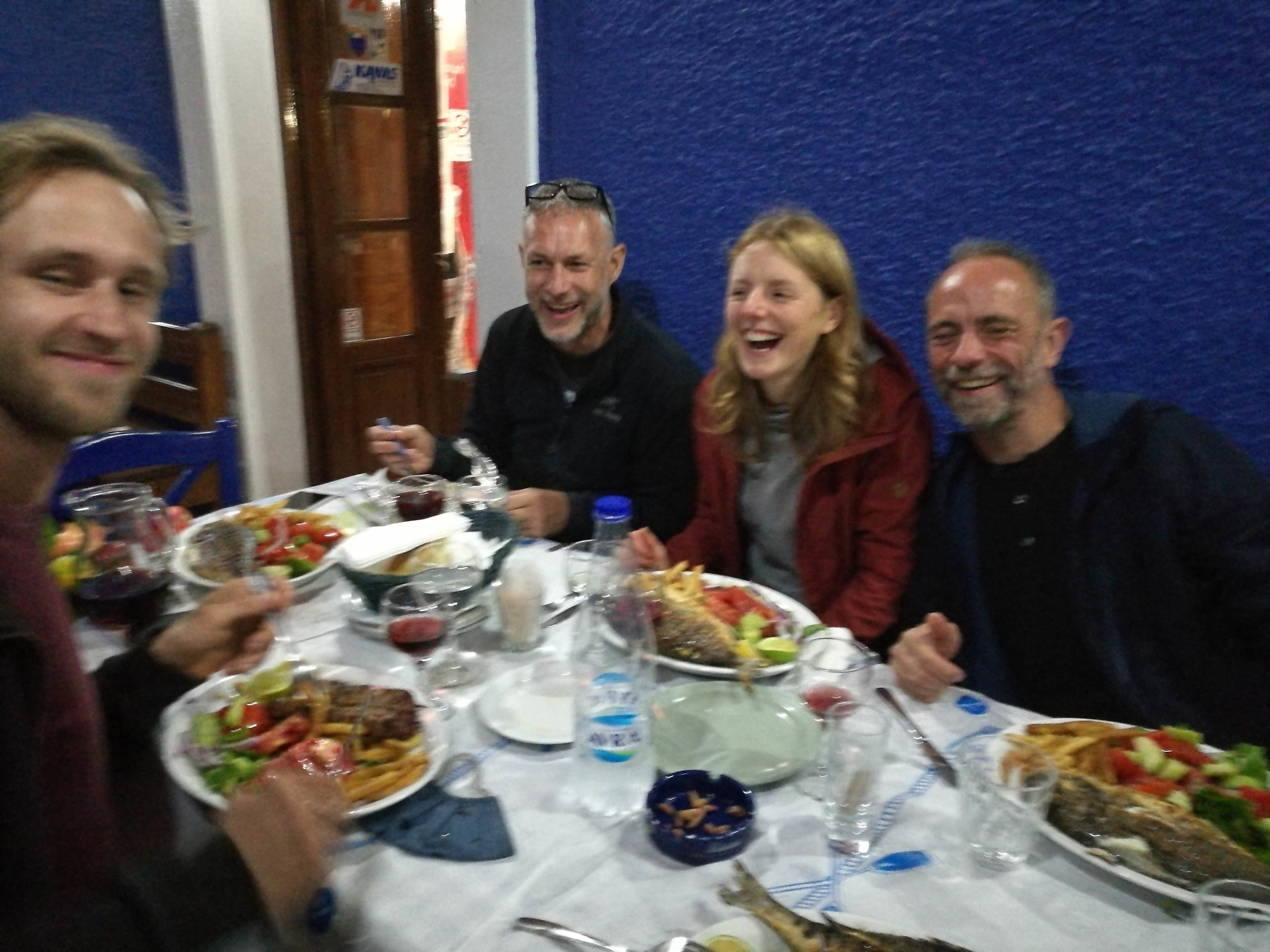 Bij aankomst in Leonidio zaten Pano en Gideon ons op te wachten op het terras van de Panjika bar voor een biertje, hét klimmerscafé van Leonidio. Hier is het echt een ander klimaat dan in Ligurië op het moment, het voelt echt nog als een na-zomerse avond! Heerlijk. De heren hadden toen wij aankwamen net hun eerste klimdag achter de rug en hadden voor twee weken een AirBnB huisje gehuurd in Leonidio. Vet gezellig hun hier te treffen! We hebben deze periode gezellig afgesproken om te klimmen, na afloop samen biertjes te drinken en af en toe uit eten te gaan! Verder hebben wij ook heel chill van hun wasmachine en WiFi gebruik (of misbruik?) kunnen maken :). Thaaanks guys!
